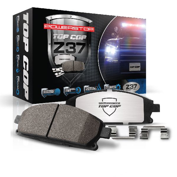 • The PowerStop Z37 Top Cop ceramic brake pads are designed as an upgrade over stock brakes to reduce brake dust & eliminate noise for pursuit and fleet vehicles. These brake pads are made with a low-dust ceramic formula, infused with carbon-fiber to strengthen the compound and provide maximum brake efficiency on demanding fleet applications Premium stainless-steel hardware along with ceramic brake lubricant is included with the Z37 brake pads making it easier to complete your brake job. Use Z37 Top Cop ceramic brake pads to give your pursuit or fleet vehicle maximum stopping power.