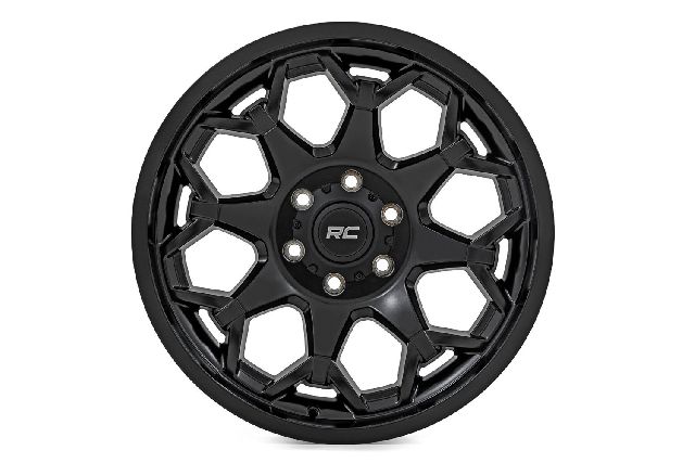 • Set yourself apart from the pack with Rough Country?ÇÖs One-Piece Series 96 Wheels. This 8-spoke black and machined wheel offers an incredible look that?ÇÖs sure to turn heads. This one-of-a-kind wheel features 8 spokes that flare out near the lip for a dramatic visual style that?ÇÖs perfect for any lifted vehicle. This stylish wheel features a gloss black coat with machined accents that pop under any truck or Jeep.Rough Country?ÇÖs Series 96 is a one-piece wheel design, constructed from a single piece of heavy-duty aluminum for the optimal balance of weight and performance. Each Series 96 Wheel includes dual machined ?Ç£Rough Country?Ç¥ logos and a black center cap with ?Ç£RC?Ç¥ logo design and includes a limited lifetime warranty.